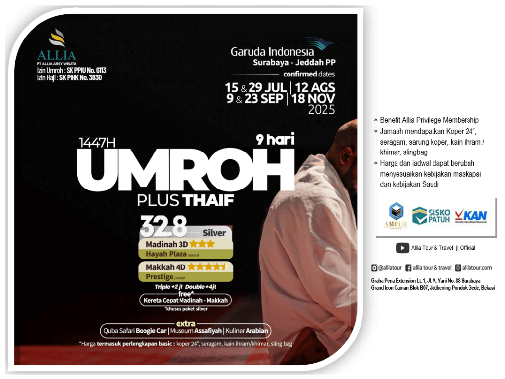 UMROH Plus Thaif, Start Surabaya, 9 hari, by Garuda Indonesia (18 Nov) [SILVER]