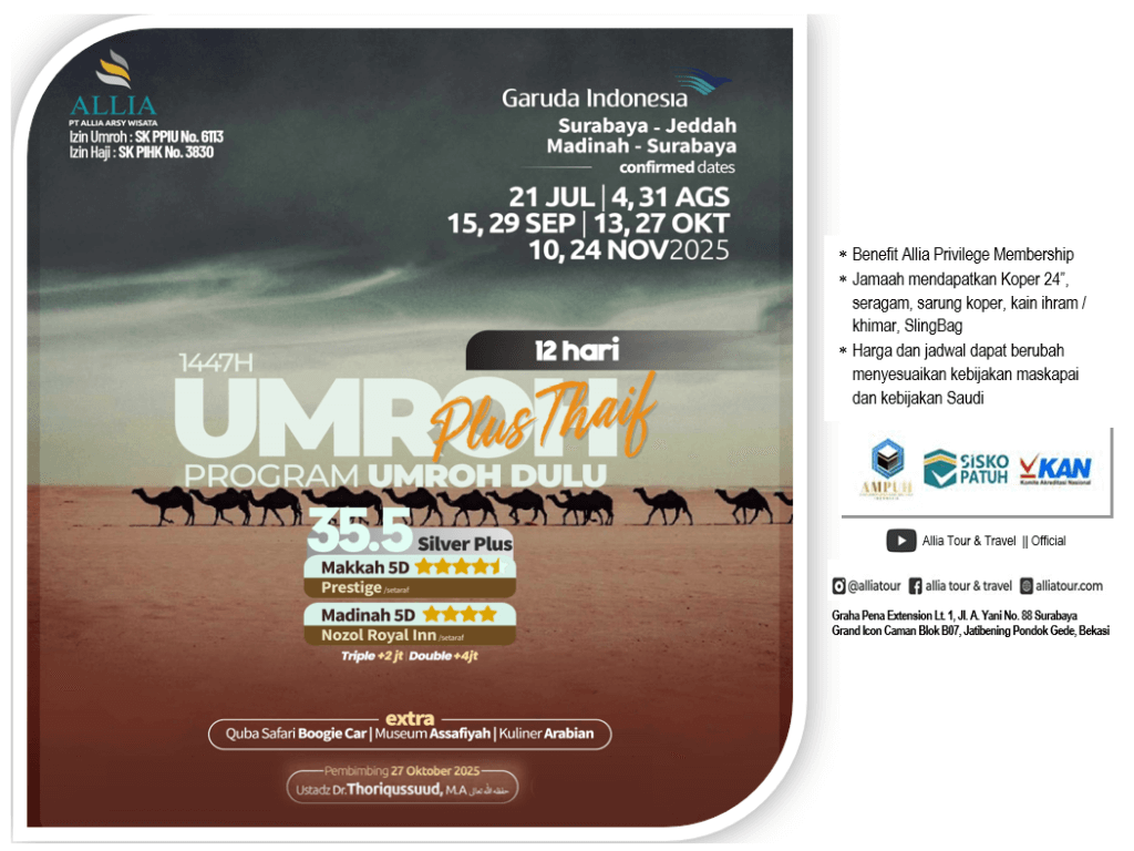 UMROH Plus Thaif, Start Srby, 12 hari, Umroh dulu, by Garuda Indonesia (27 Okt) [SILVER PLUS]