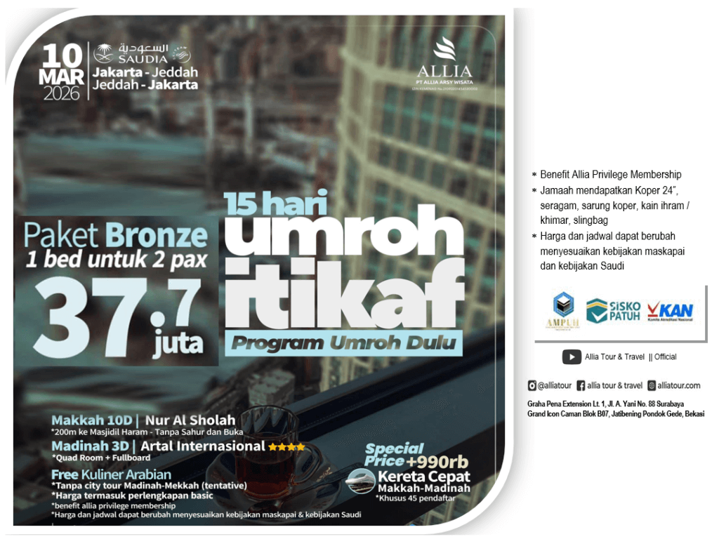 Umroh I'tikaf Ramadhan, 15 hari, start Jakarta, by Saudia Airlines, BRONZE (10 Mar 26)
