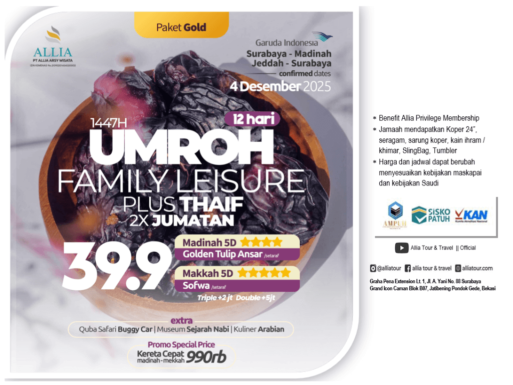 UMROH Leisure, Healing Al Ula + Thaif, Start Srby, 12 hari, by Garuda Indonesia (04 Des)