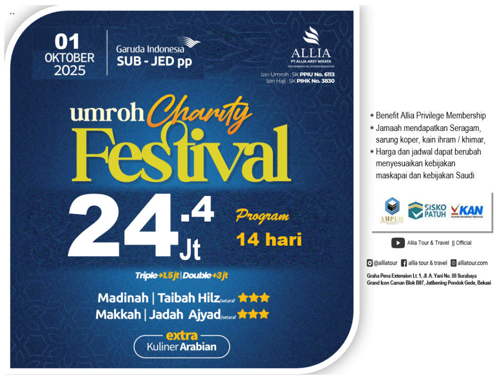 UMROH TRENDY - CHARITY Festival, 14 hari, Start Surabaya by Garuda Indonesia (01 Okt '25) [SALE]]