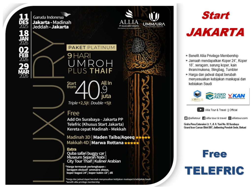 UMROH LUXURY PLATINUM, 9 HARI PLUS THAIF, by Garuda (11 Des 2025) START JAKARTA