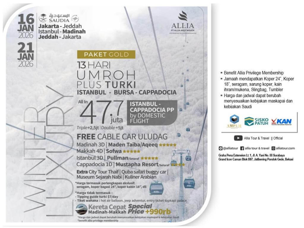 UMROH LUXURY Plus TURKI, WINTER, 13 hari, by Saudia Airlines 21 Jan 2026)